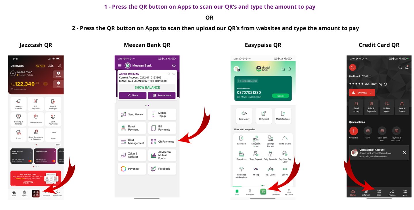 Scan the QR code below to make a payment using your debit or credit card apps.